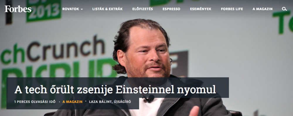Januári lapszámukban közel nyolc oldalon taglalják a Salesforce előnyeit, üzleti sikereit valamint jövőbeli terveit. Egészen közeli személyes tapasztalatok alapján mutatják be mitől az évezred egyik legnagyobb üzleti zsenije Benioff. Apró titkoktól kezdve a lehető legpublikusabb pénzügyi kimutatásokig több fronton igazolják miért érdemes a Salesforce-t választani vagy épp mitől is olyan más a kaliforniai vállalat, mely sosem szerepelt másodiknál rosszabb helyen a Forbes leginnovatívabb vállalatainak listáján. Át is adjuk a szót a Forbes-nak, bővebben az alábbi linken és a magazinban tudhatsz meg részleteket.