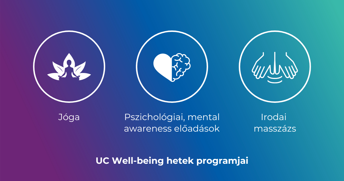 Május közepétől kezdődően, 4 héten keresztül olyan testi-lelki mindfullness programokat szerveztünk, melyek során feltöltődhettek munkatársaink és kiegyensúlyozottabbá tehettük a mindennapokat. Hogyan vedd rá magad, hogy rendszeresen lemenj a konditerembe? Mit tehetsz azért, hogy tudatosabb legyen a social media jelenléted? Milyen tényezők befolyásolják az online biztonságérzeted? Hogyan légy jelen a stresszes ügyfél helyzetekben, hogyan húzz határt? Mit csinálj, ha bekapcsol a versengő éned? Többek között ezen kérdésekben igyekeztünk támogatni munkatársainkat az UC well-being hetek során.